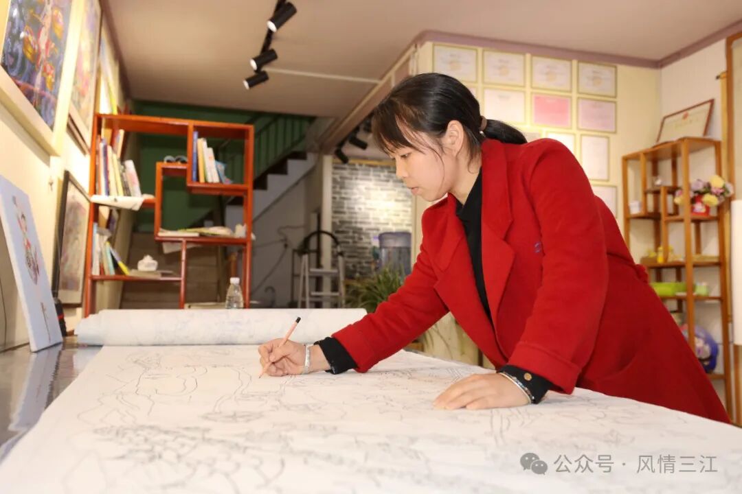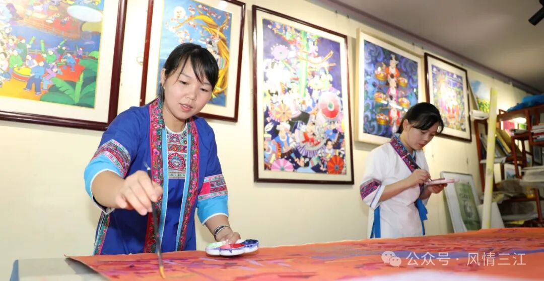 近年来,三江大力发展农民画产业,培育出陈美美等一批农民画独立创作者,他们通过手中的画笔描绘美好生活,衍生农民画产业链,并开发农民画文创产品,深受消费者喜爱,取得良好经济效益。目前,全县共有农民画作者600余人,年产值超500万元。